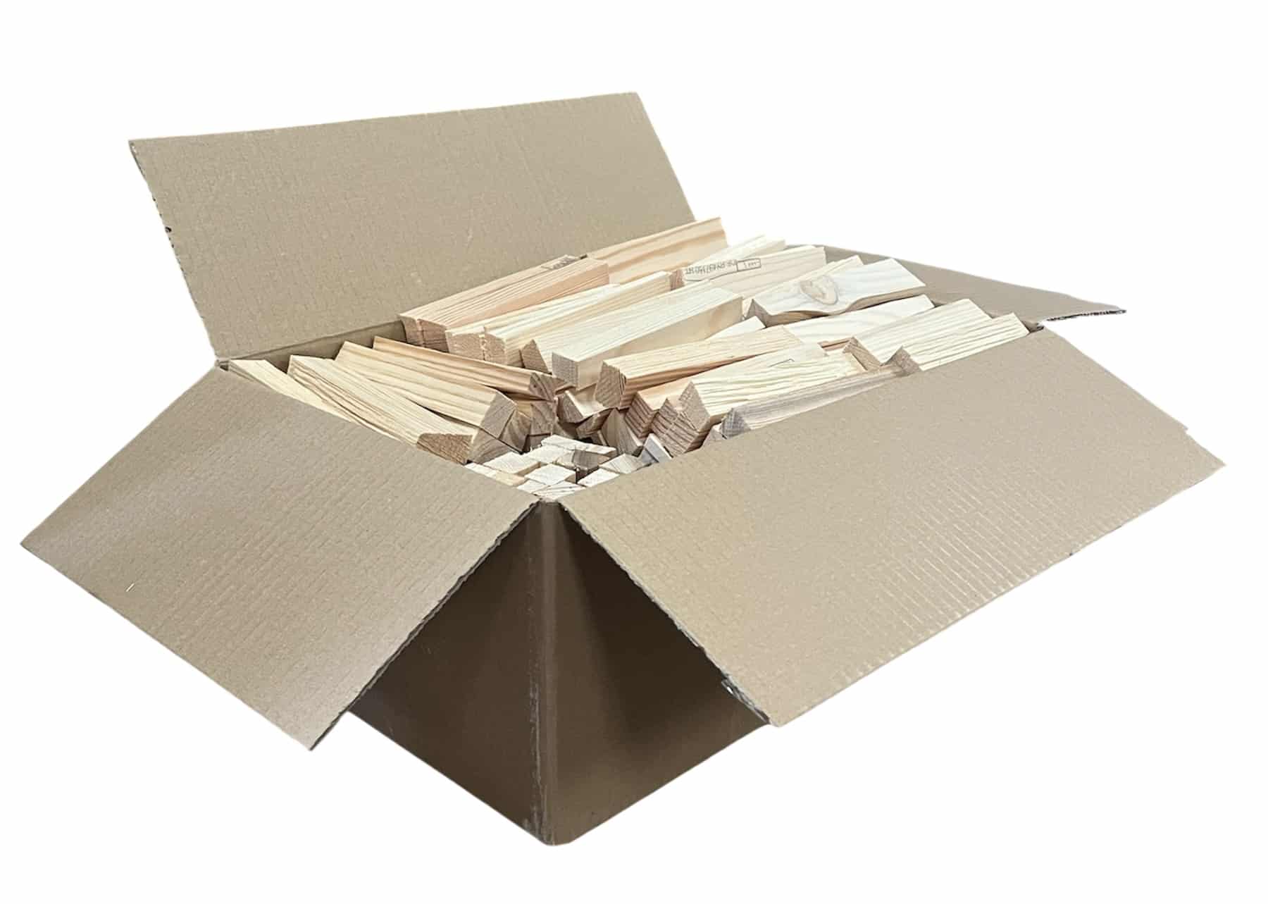 Each box contains approximately 16.3 litres of kindling, with sticks averaging around 5 inches in length. As this is a natural product, sizes and thicknesses may vary, giving you a practical mix for easy fire lighting. The average weight per box is between 5–6kg.